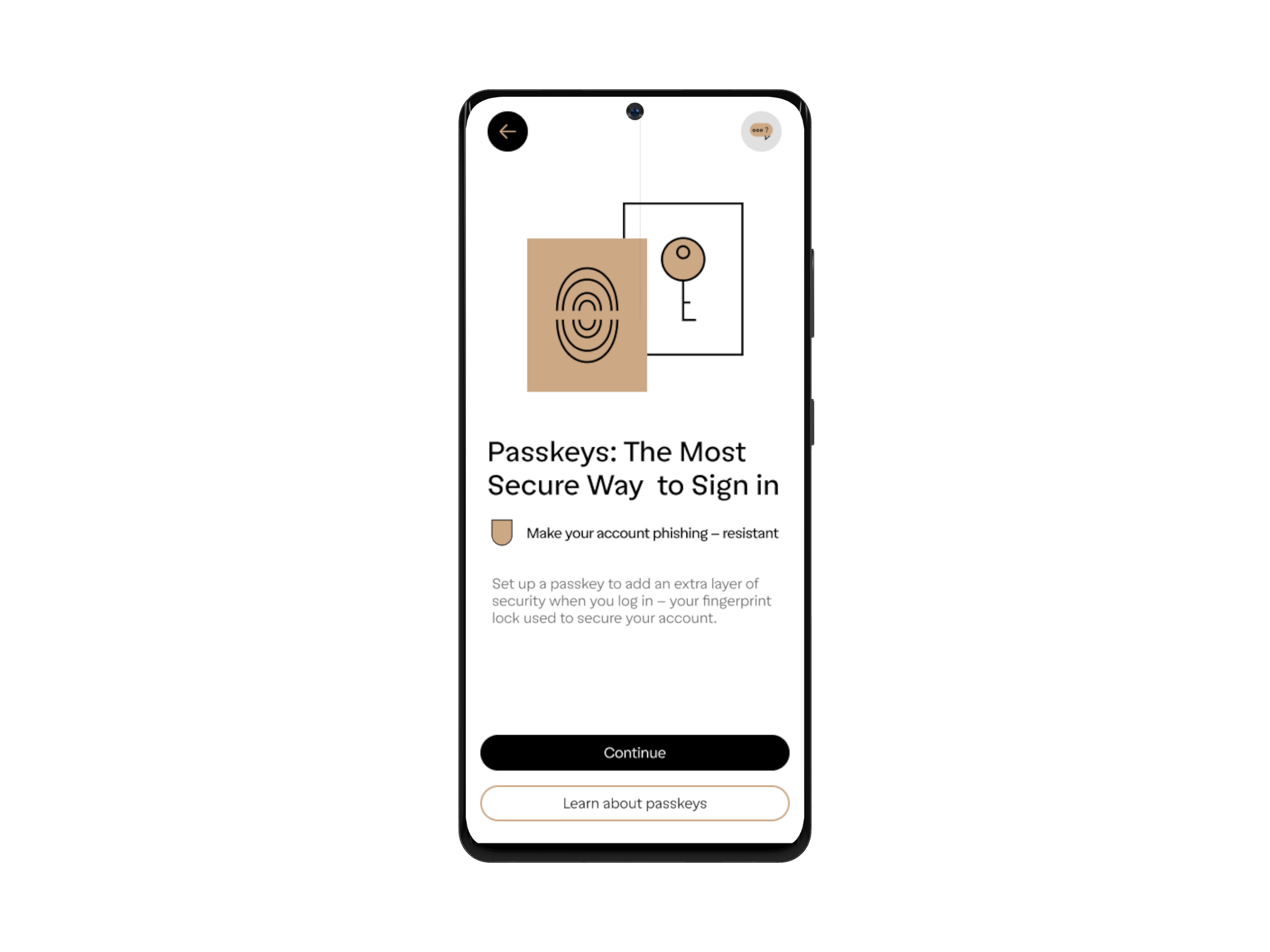 Password management creates friction and lockouts. Jaudi uses biometric passkeys (fingerprint/Face ID) for authentication, educating users on the security benefit while keeping setup simple: one button, one action. Faster login, stronger security, zero password friction.